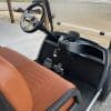 • Grade Vinyl, Solid Black or Brown, Color Matched with Black Accents. Foldable Rear Seat Perfect for Hauling. Built in Cooler Beneath Rear Seat.